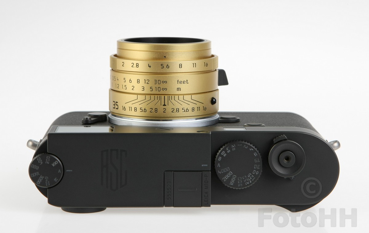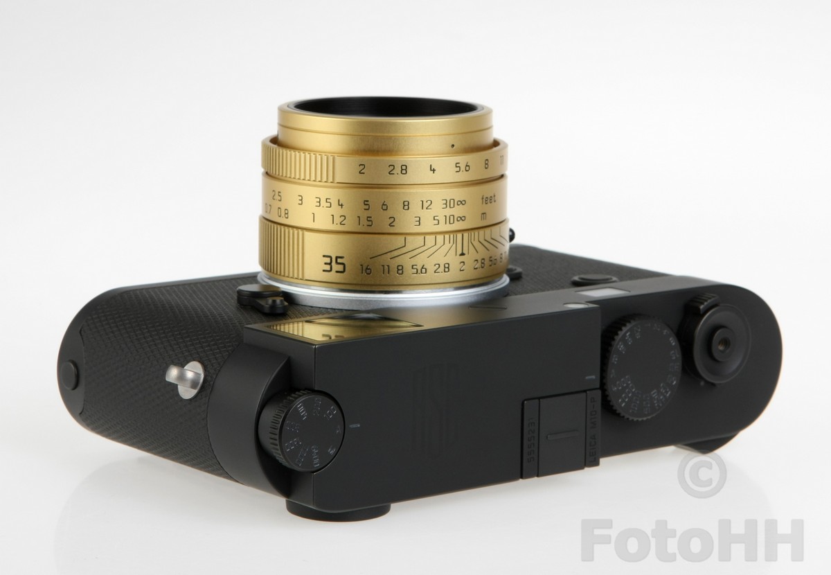 The all-black camera with a gold anodized Summicron-M 35mm f/2 ASPH recalls the aesthetic of Oskar Barnack’s original Ur-Leica, which he first used to test film emulsions for motion picture cameras.
