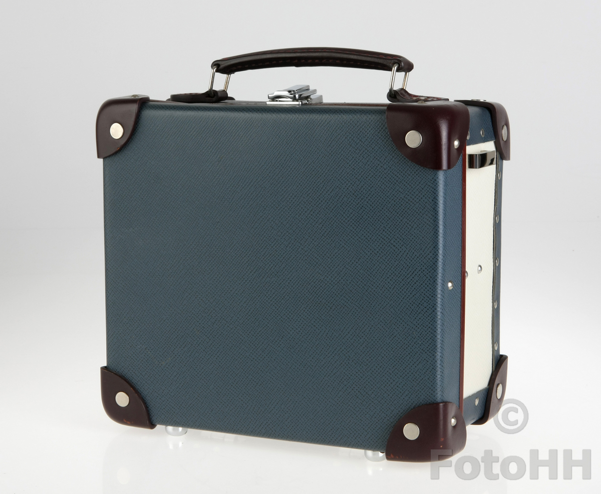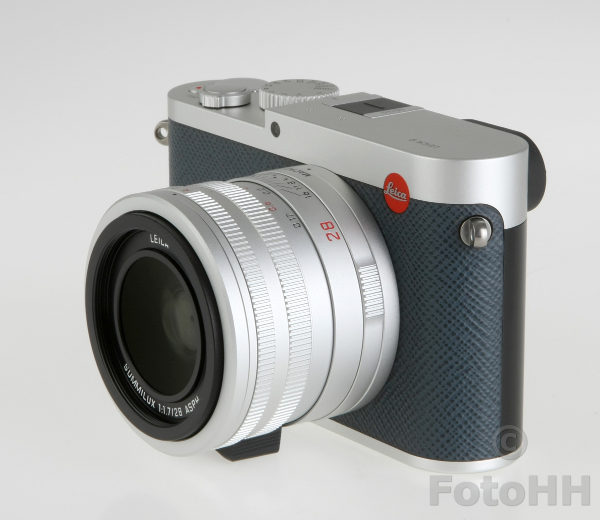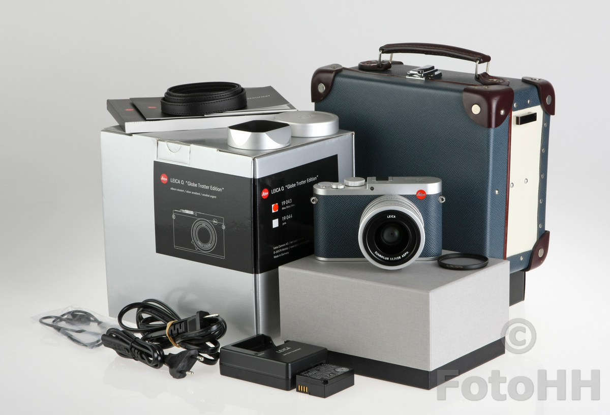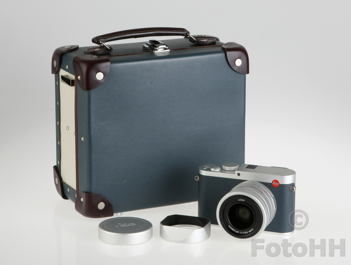 Silver Leica Q in navy blue. Leica Japan collaborated with Globe-Trotter and produced two different colors which were navy and pink.