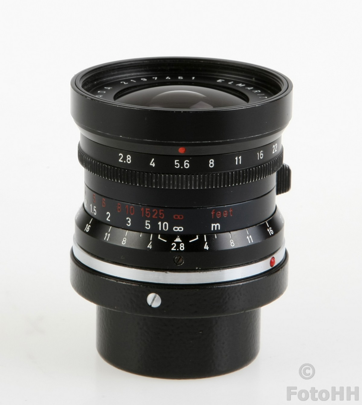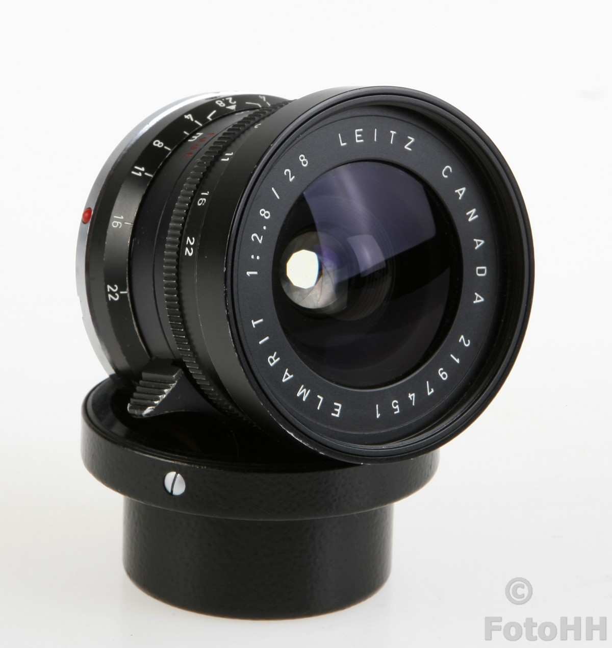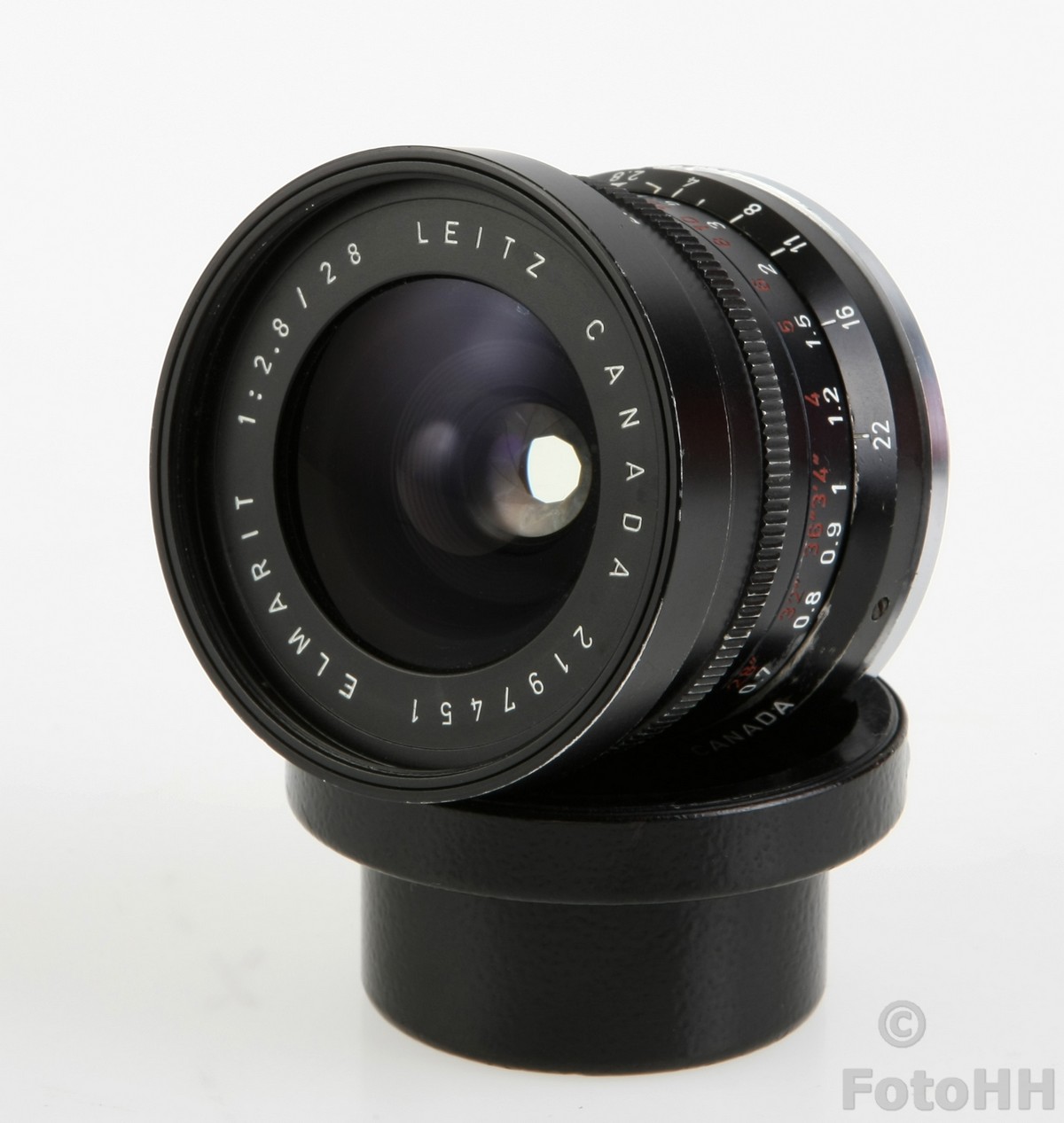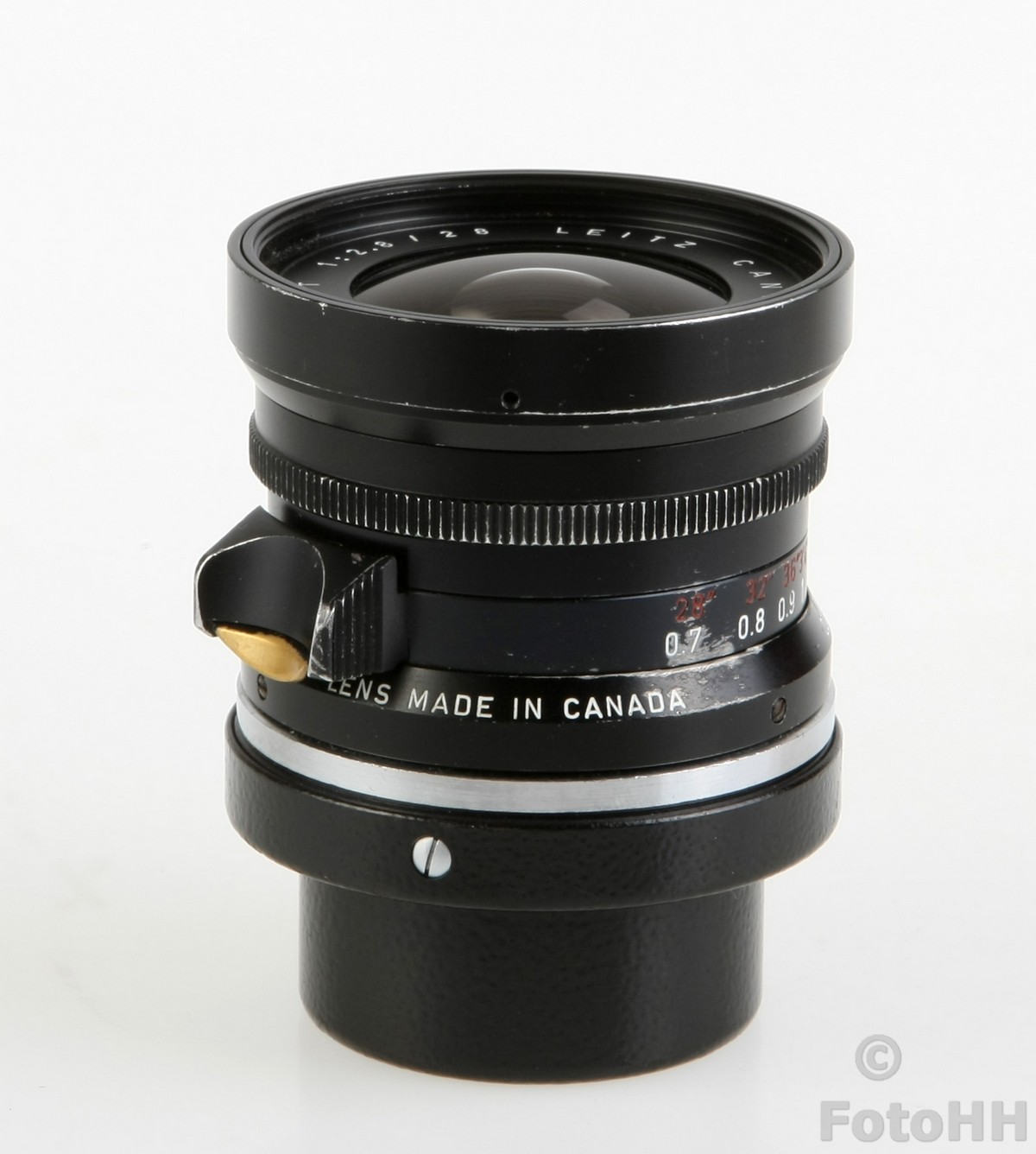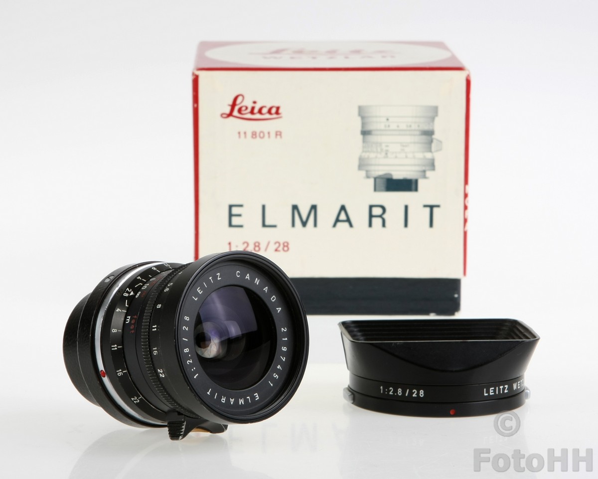 This rare 28mm Elmarit-M Nine-Element lens made by Leitz Canada has just been added to the collection. It has a somewhat strange appearance when you compare it to other 28mm Leica lenses. For example, the distance scale markings in feet are painted red instead of the usual yellow/orange. It is in very good condition!!