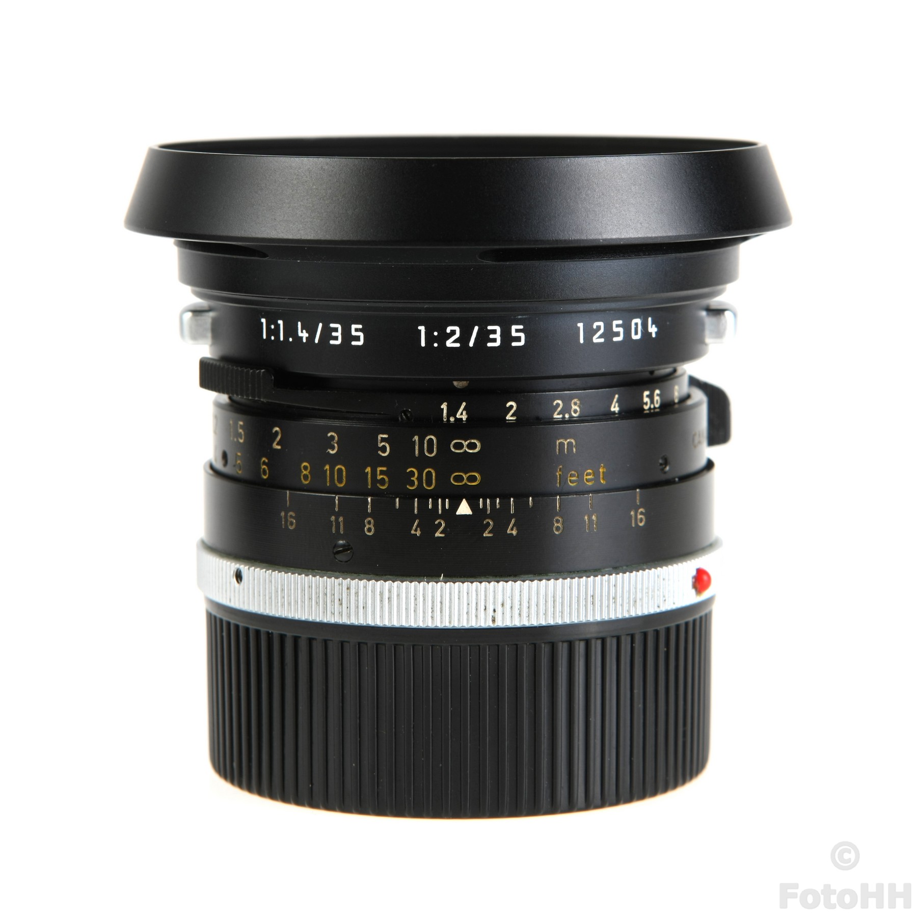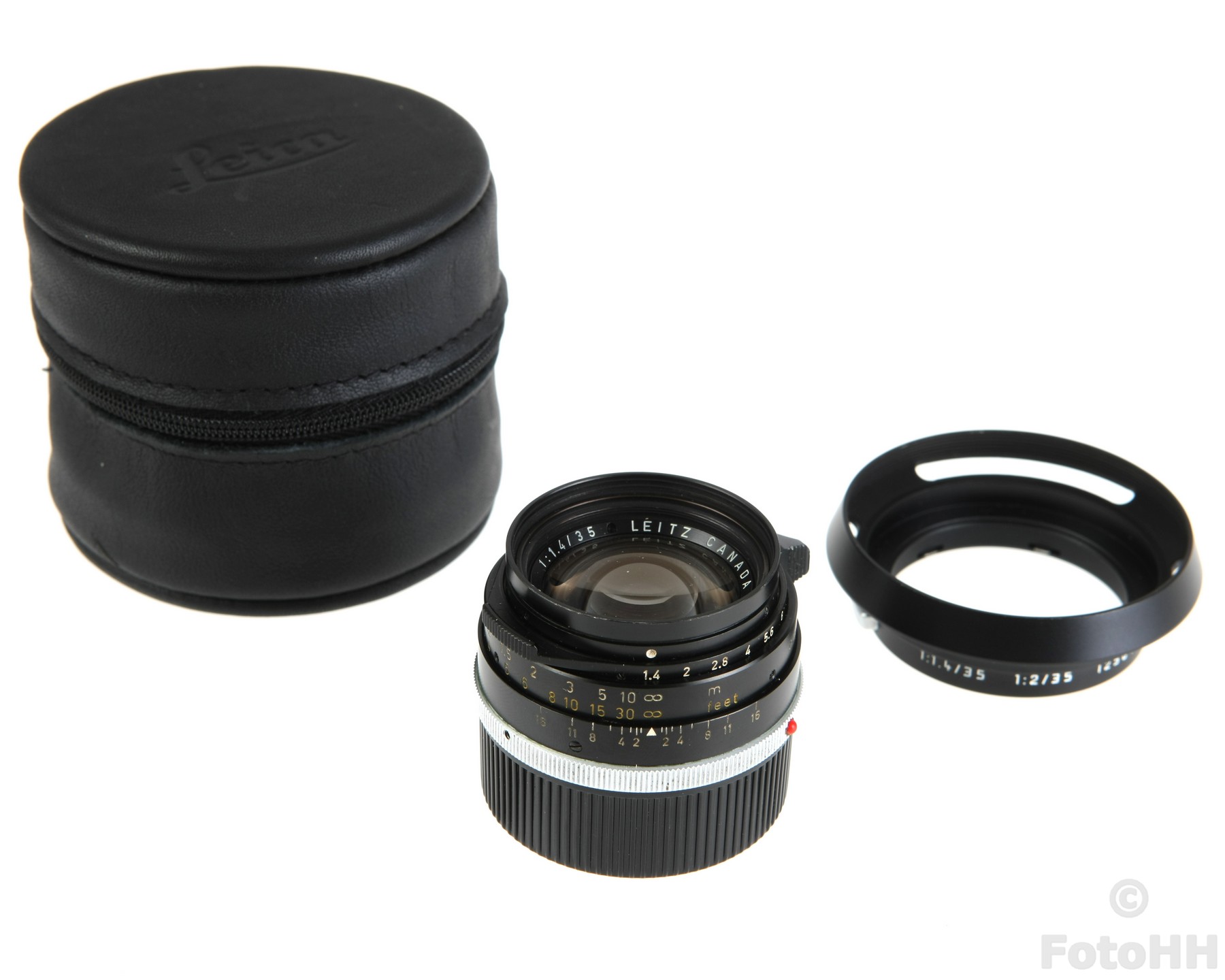 Comes with the rear lens cap,leather pouch and lens hood (Leica number : 12504) included.