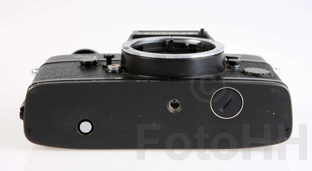 The third (and last) generation of Leicaflex cameras. Split-image rangefinder focusing area. This one has Leica "50th anniversary" engraving on the prism.