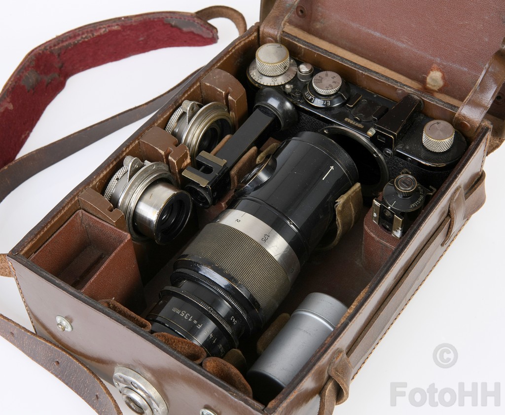 The body itself carries the serial number : 53043 and the 3 Hektor lenses (35mm/3,5 a 5cm/2,5 and a 135mm/4,5) ALL carry the serial number : 043. It is very seldom that a complete set like this survived and it actually might be the only one still existing in the world.